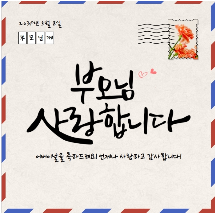 안녕하세요 23년도 어버이날 우리가 효도하는 방법은 뭐가 있을까요? 어버이날은 부모님께 감사와 사랑을 표현하는 날입니다. 그 중에서 직접 쓴 편지는 또 다른 감동을 안겨줍니다. 어버이날 편지에 쓰기 좋은 몇 가지 문구 정리해보겠습니다. 부모님께 보낼 편지는 직접 쓰는 것이 가장 좋으나, 아래 참고할 수있게 문구를 준비하였습니다. 더욱 멋지고 감동받을 수 있다면 참고하는건 좋을것 같애요. 1. 부모님께 감사의 마음을 전하는 문구 "어머니, 아버지 항상 고맙고 사랑합니다. 제 인생의 멋진 시작과 지금까지의 모든 것은 다 두 분 덕분입니다. 감사합니다." 2. 부모님께 사랑의 말을 전하는 문구 " 어머니, 아버지 항상 저를 지켜주시고 사랑해주셔서 감사합니다. 부모님 없이는 이 세상이 어떤 의미도 없을 것 같습..